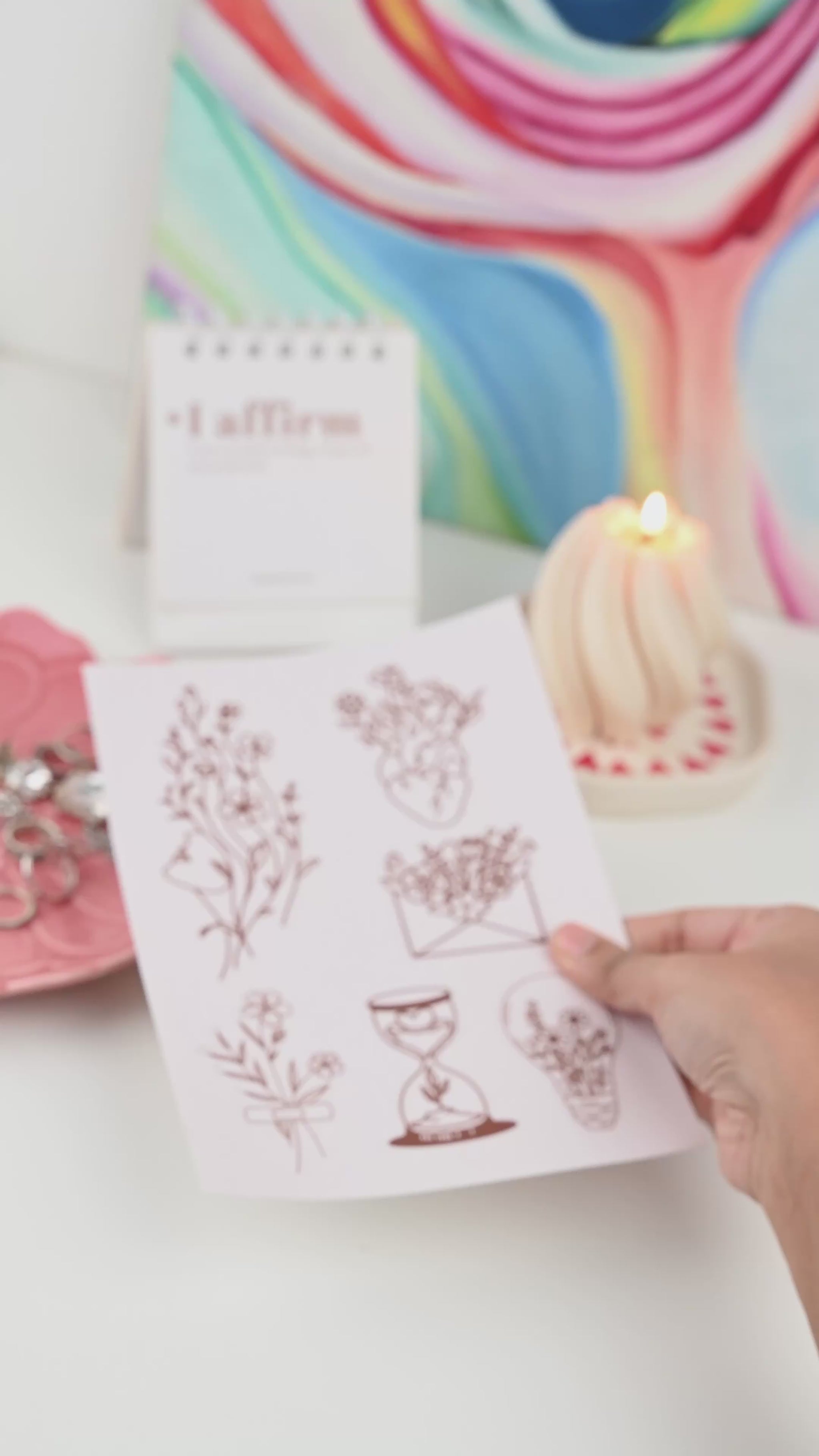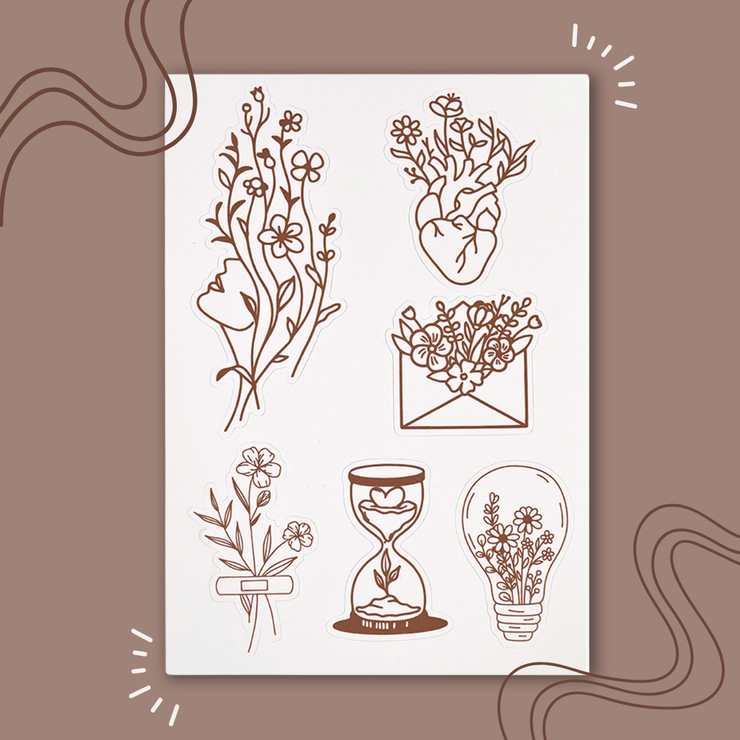 Comes as an A5 sheet with 6 clean-cut stickers. The dimensions adjust naturally to the form of each line design, minimal, intentional, and proportioned to blend seamlessly with your aesthetic.
